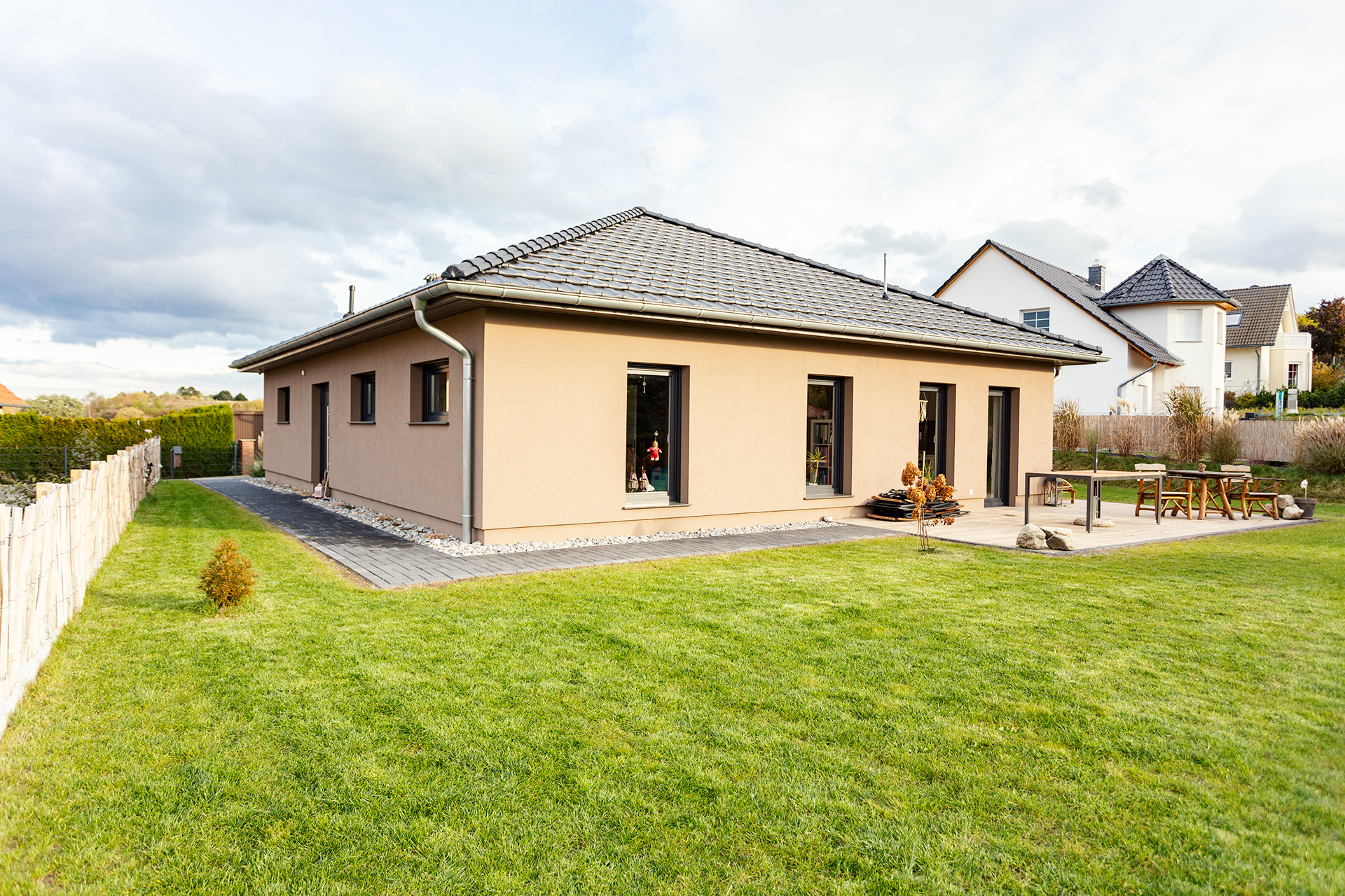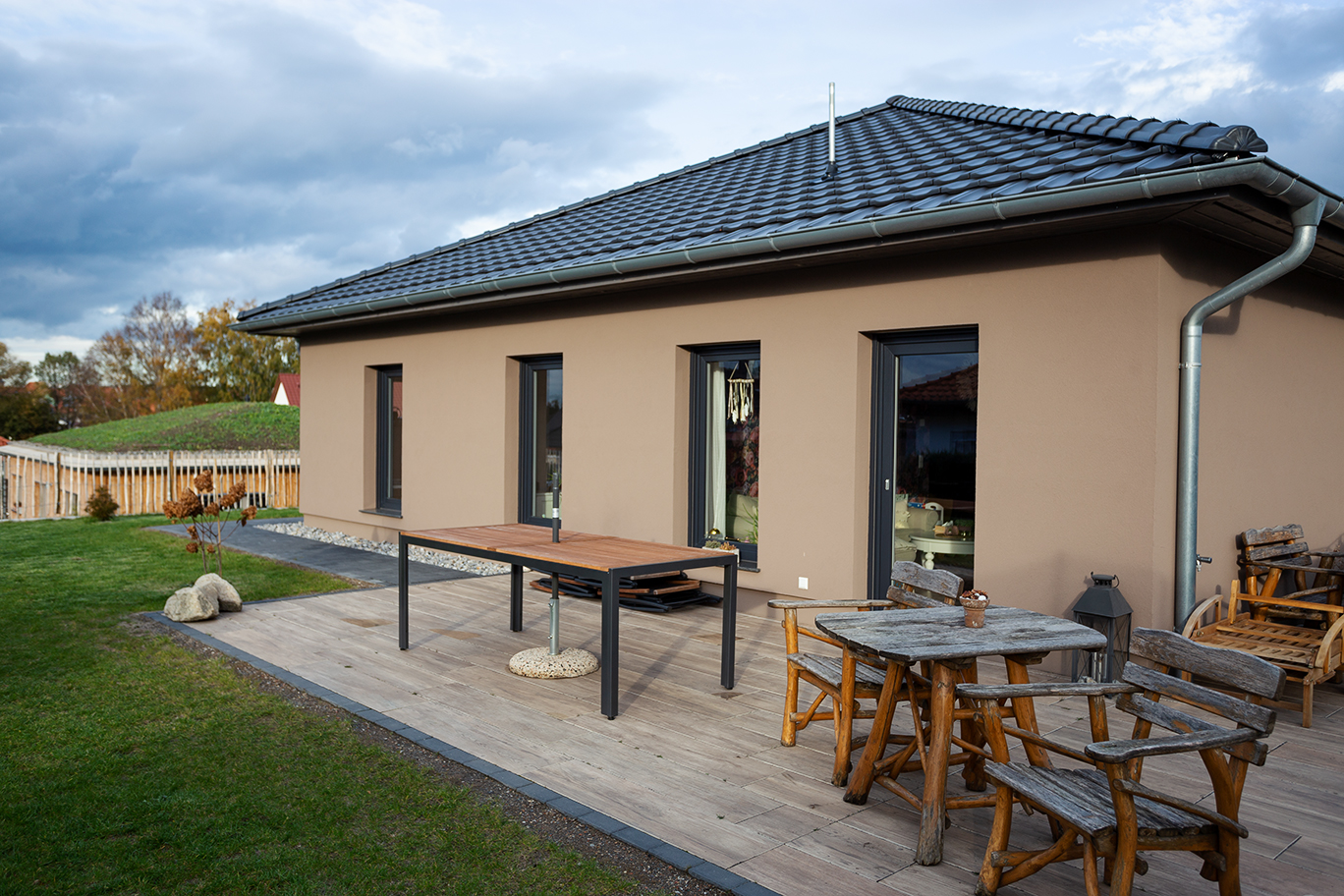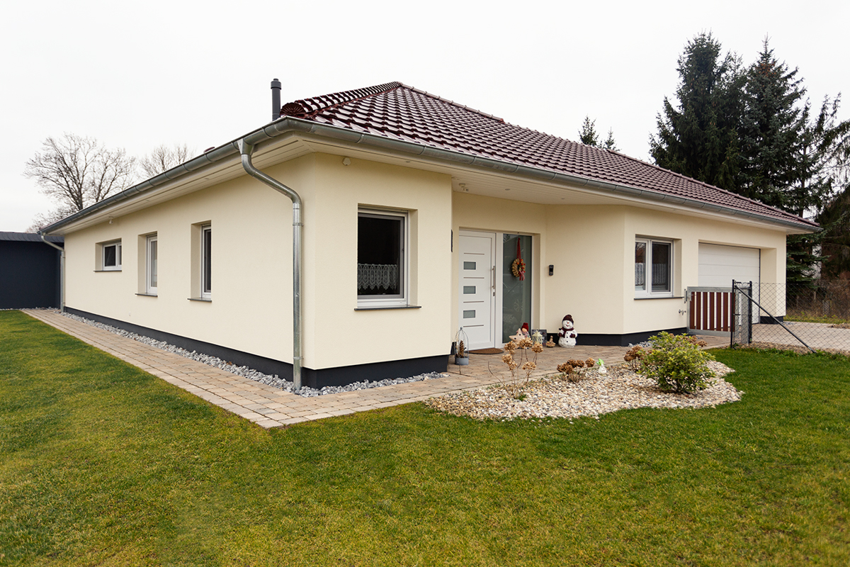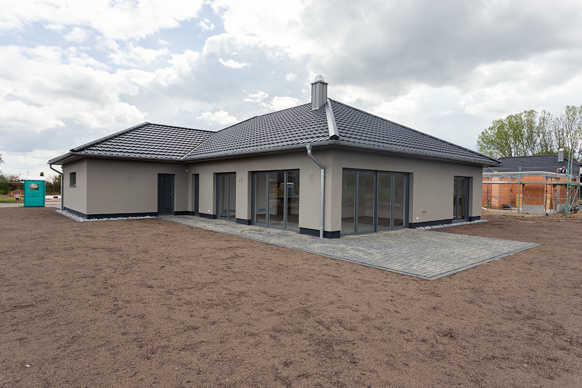 Der Bungalow wird bei uns komplett in Massivbauweise errichtet, er ist preiswerter als Häuser mit zwei Etagen, benötigt allerdings mehr Grundfläche als mehrgeschossige Häuser.