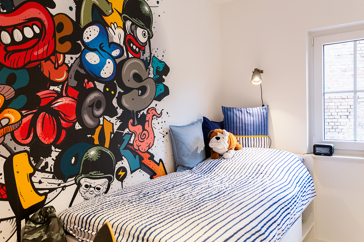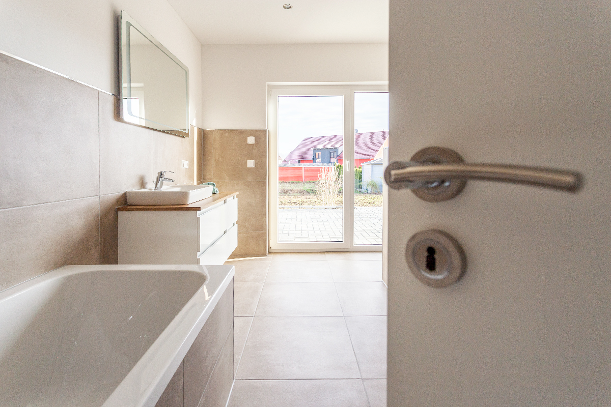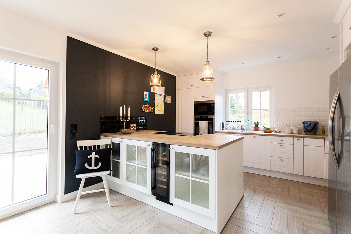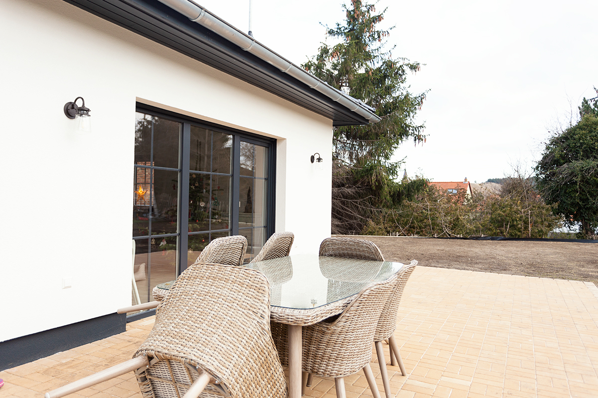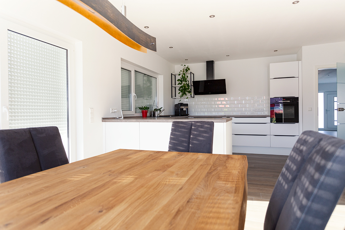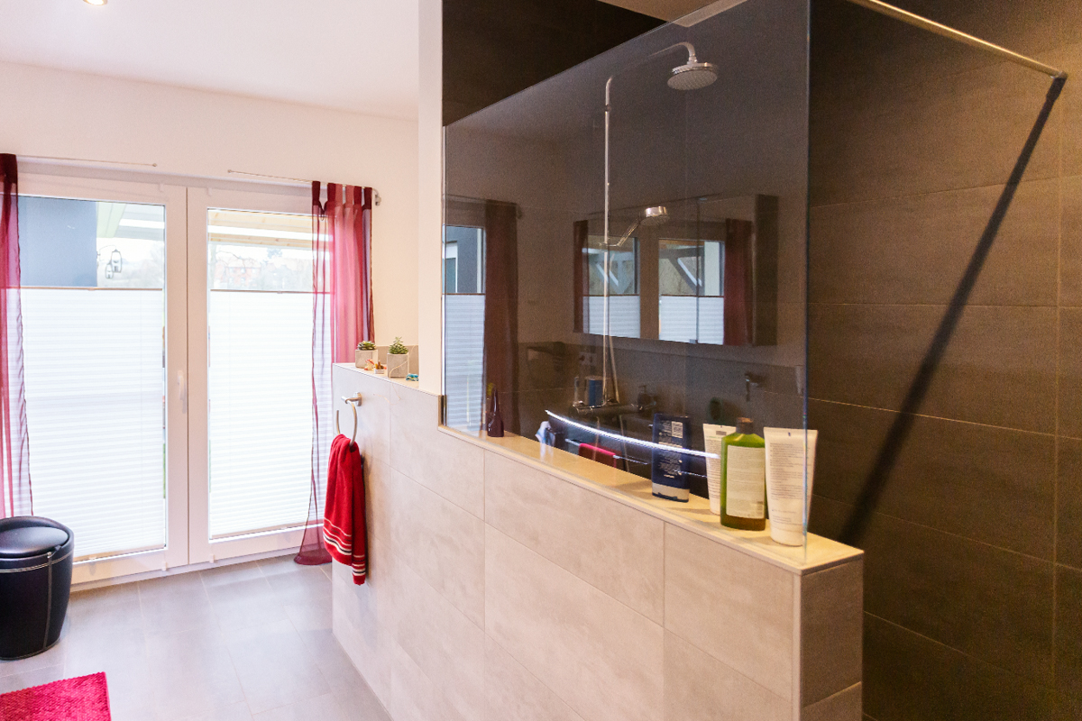 Die erhöhte Raumhöhe von 2,86 Metern, große Fenster, die viel Licht in die Räume lassen, der Dachüberstand von 50 Zentimetern sowie die glatten, engobierten Tonziegel, mit denen wir das Dach eindecken, unterstreichen die Hochwertigkeit dieses Haustyps. Der Zugang führt über eine gedämmte Bodeneinschubtreppe.